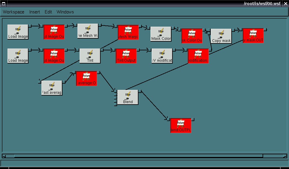 The workspace is just another filter, so it can be used in the same way as filters. This means that you can mark some images in the workspace as input and some as output and save the workspace to a .wsf file and then insert the Workspace item from the Other category in the filter insertion dialog to another workspace. Then select the .wsf file in the dialog which will appear after left clicking on the nested workspace item. When you choose the nested workspace to be loaded as a black box, the images you have marked as input will appear as the input connection points an those you marked as output as output connection points. When you load the nested workspace as line-up, all the filters and images in the nested workspace except the marked ones will be inserted into the current workspace.